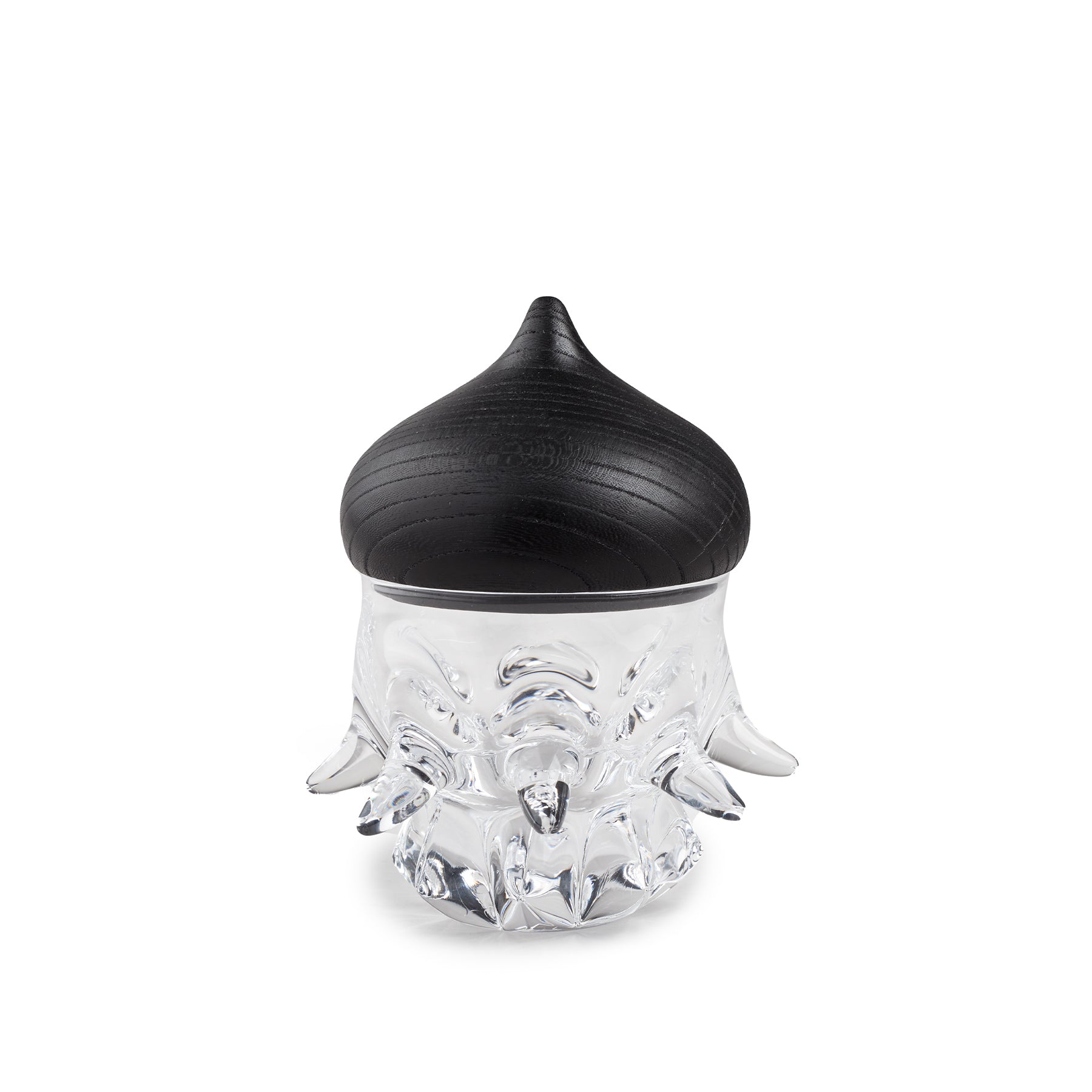 This playful hand-blown glass jar is paired with a beautifully crafted wood top. The natural color of the wood is preserved with a clear finish. Taka crafts his pieces with attention not only to form but also to how the piece will feel in the hand resulting in exquisite craftsmanship that you can see and touch.