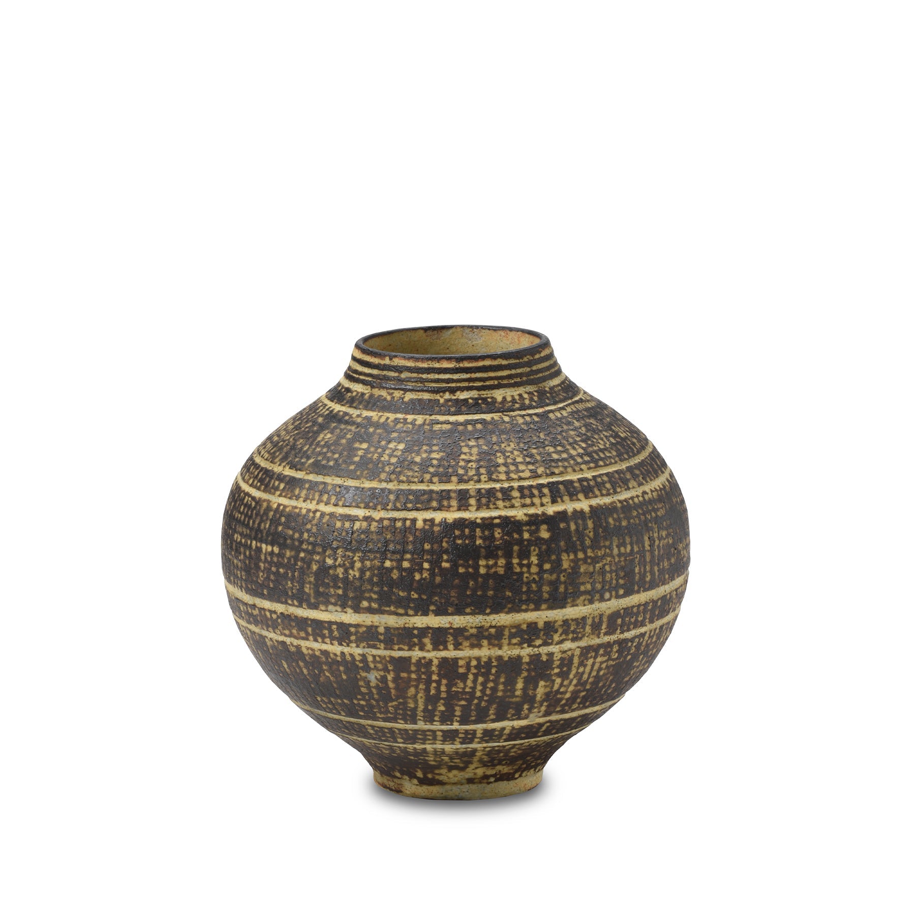 Akio Nukaga's work explores the possibilities of how he leaves a trace of himself in clay. In this piece. he stamps patterns into the soft. wet clay before it is fired—a nod to Japanese techniques called “inamun” and “mishimade”. The form of the vessel—inspired by ancient earthenware—appears textured and soft after stamping. After the first firing and before the second. he finishes the vessel by applying different colored slips (liquid clay)—a technique that he has refined over the last 30 years. This piece will go on sale as part of Group 3 on Thursday July 28. 2022. at 4pm PDT.