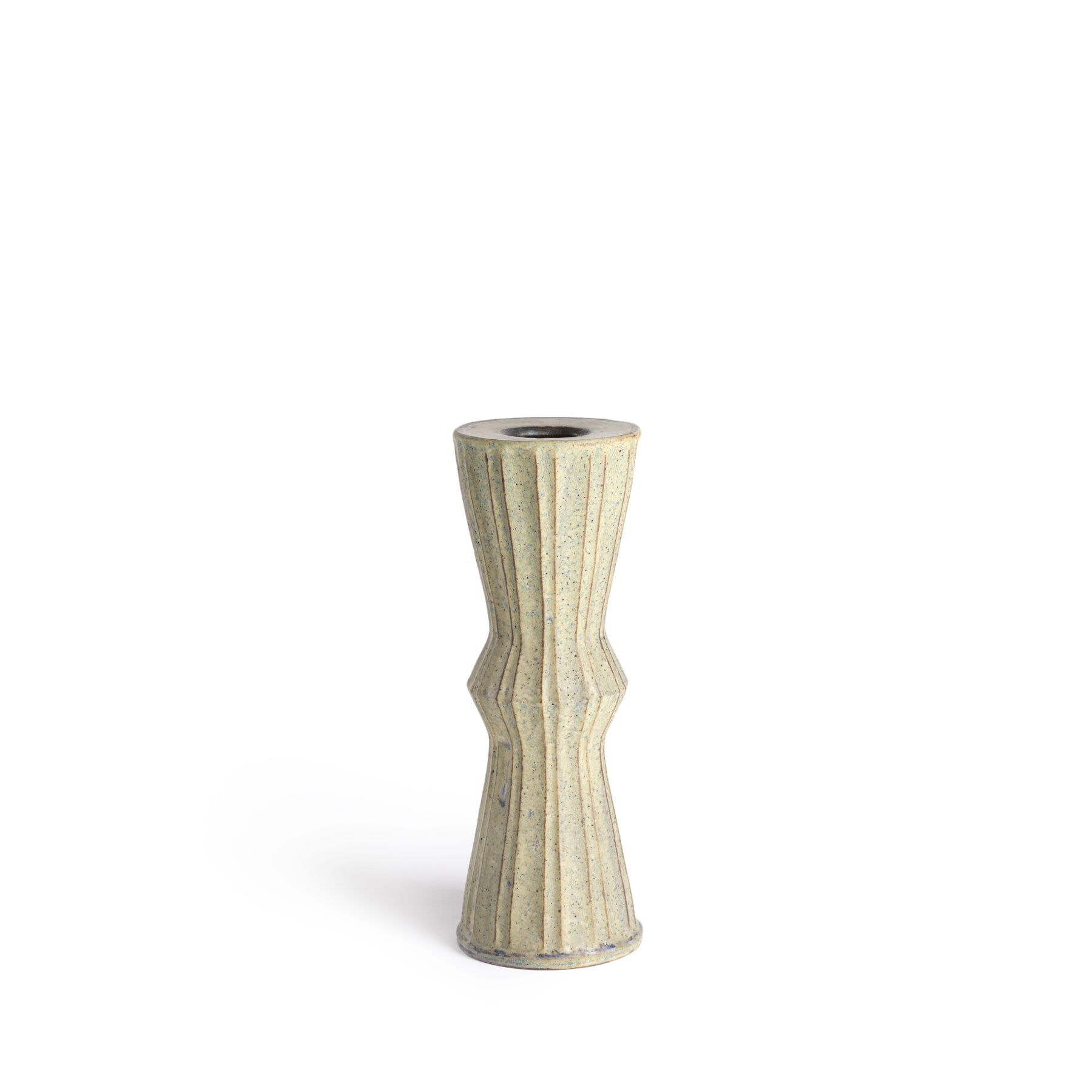 For Akio Nukaga throwing on the wheel is a technique close to his heart. one that he can always rely on. Each piece in this collection is an exploration in stacking architectural forms including spheres. cylinders. and cones in hopes of pushing expectations of what tableware can be. This piece features his signature “Pleated Work” technique of carving grooves into the wet clay after it is thrown on the wheel. These grooves accentuate the profile of the vessel creating movement and rhythm. Akio finishes the vessel by applying different colored slips (liquid clay)—a technique that he has refined over the last 30 years—to create richly varied surfaces that are complex to see and touch.