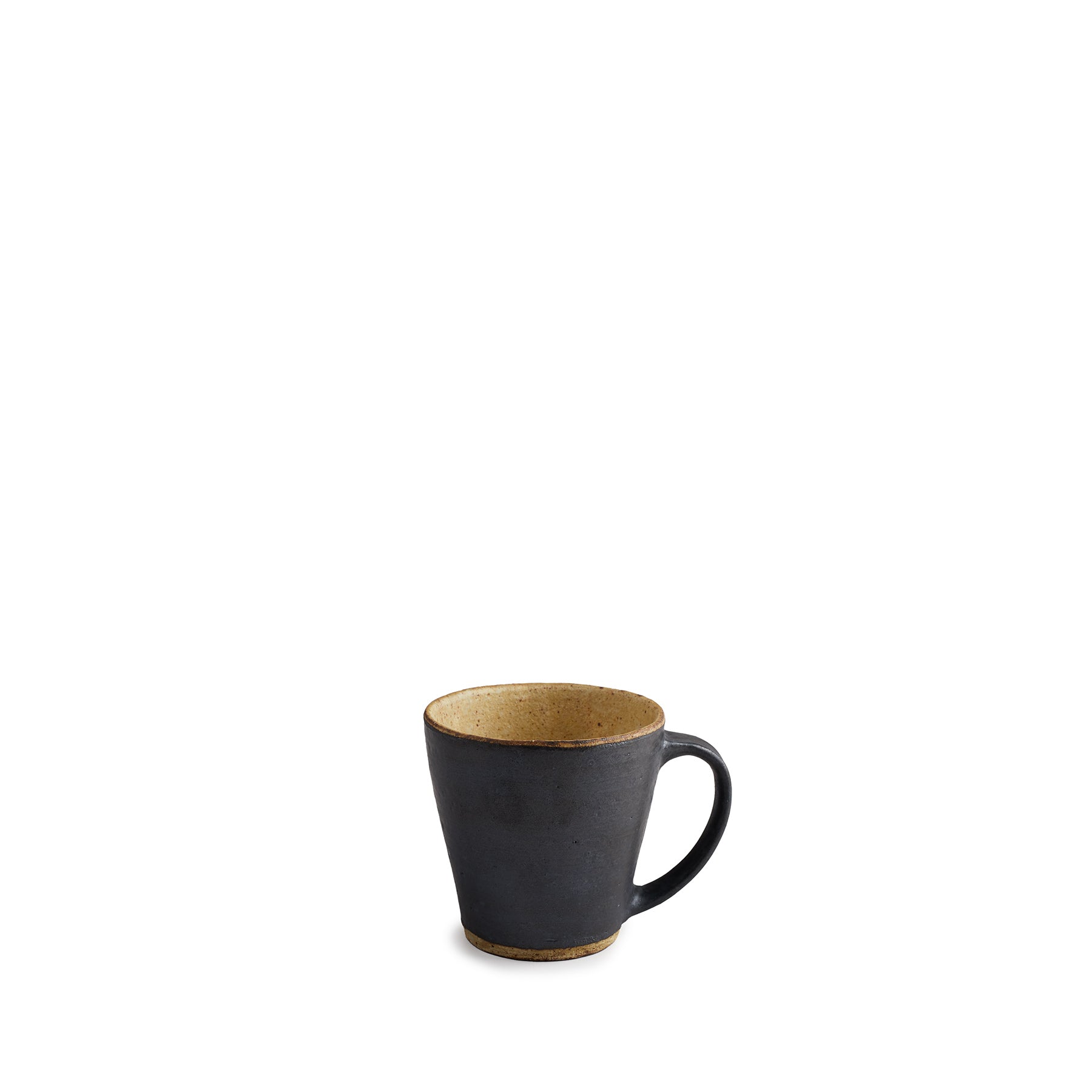 This simple and practical mug is decorated in a bold black slip. After bisque firing Akio applies colored slips and then glazes the pieces with translucent matte glaze. Beautiful to see and incredible to hold.