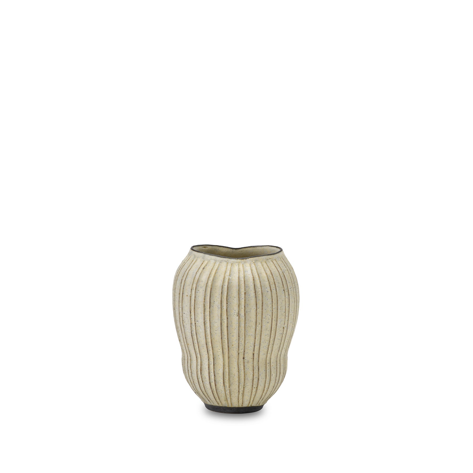 Akio Nukaga's work explores the possibilities of how he leaves a trace of himself in clay. This piece features his signature “Pleated Work” technique of carving grooves into the wet clay after it is thrown on the wheel. The form—inspired by ancient earthenware—is accentuated by these grooves curving down the profile of the vessel creating movement and rhythm. After the first firing and before the second. he finishes the vessel by applying different colored slips (liquid clay)—a technique that he has refined over the last 30 years. This piece will go on sale as part of Group 2 on Wednesday July 27. 2022. at 12pm PDT.