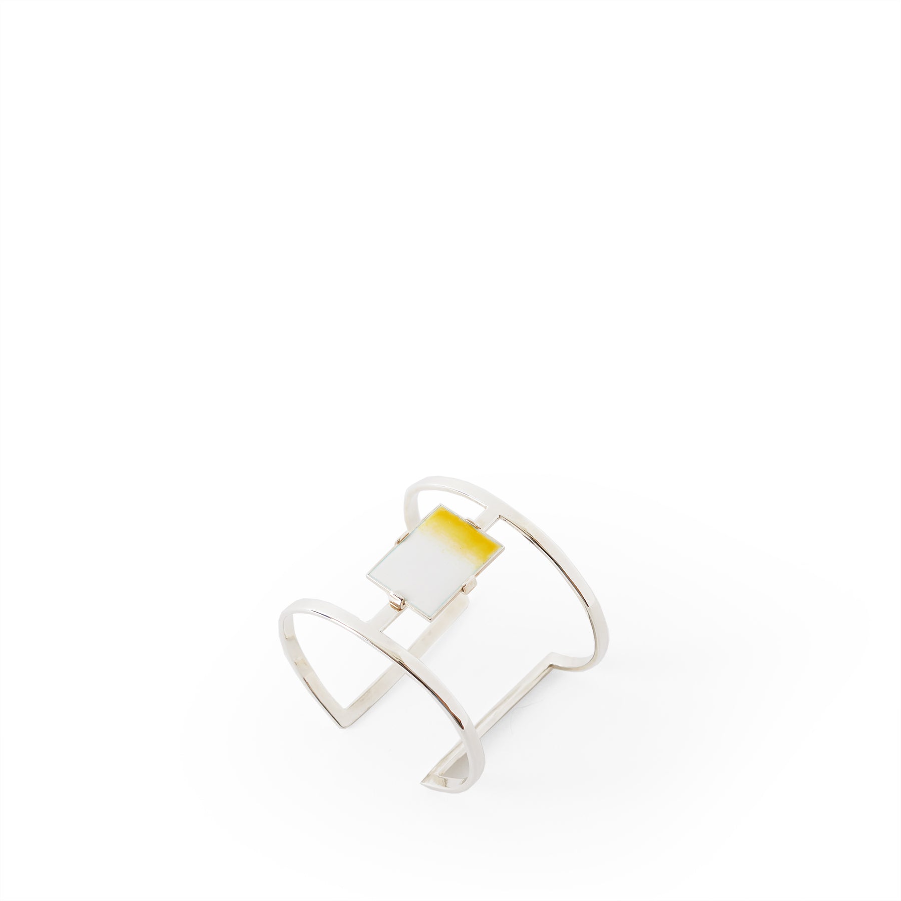 A bold and geometric statement piece adorned with a subtly colored enamel inlay. Dorian Webb designs pieces to exude a sense of timelessness that transcends style. Her use of semiprecious stones and sterling silver ensure that these designs can be enjoyed for years to come.