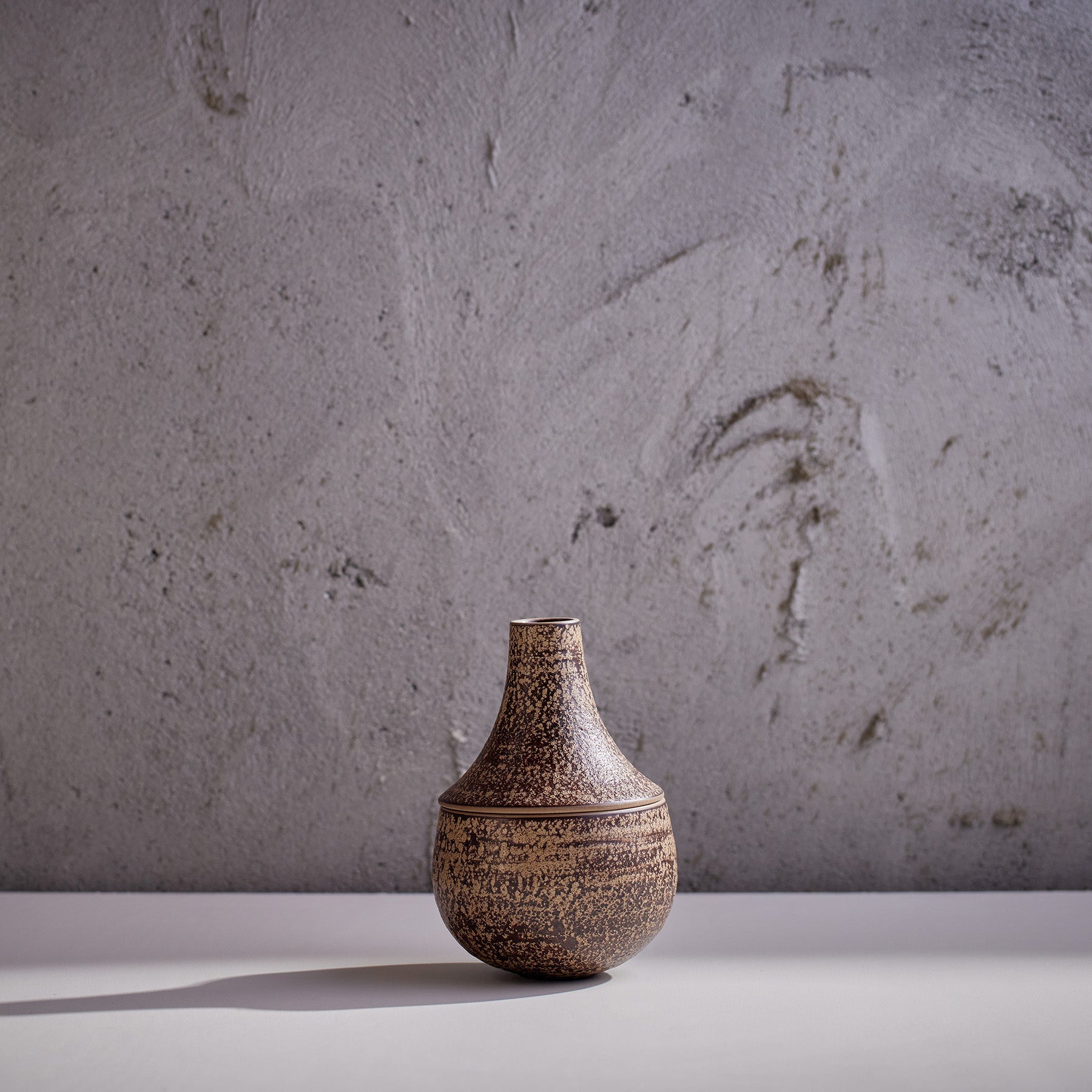 Lidded objects are usually defined by a parting line. a line that divides the top and the bottom. Here. I've hidden the line. A vase that looks like a single oject but is actually two. Hide all your favorite cookies inside or use them as two vases. It's up to you. —Tung Chiang. Clay Studio Director
