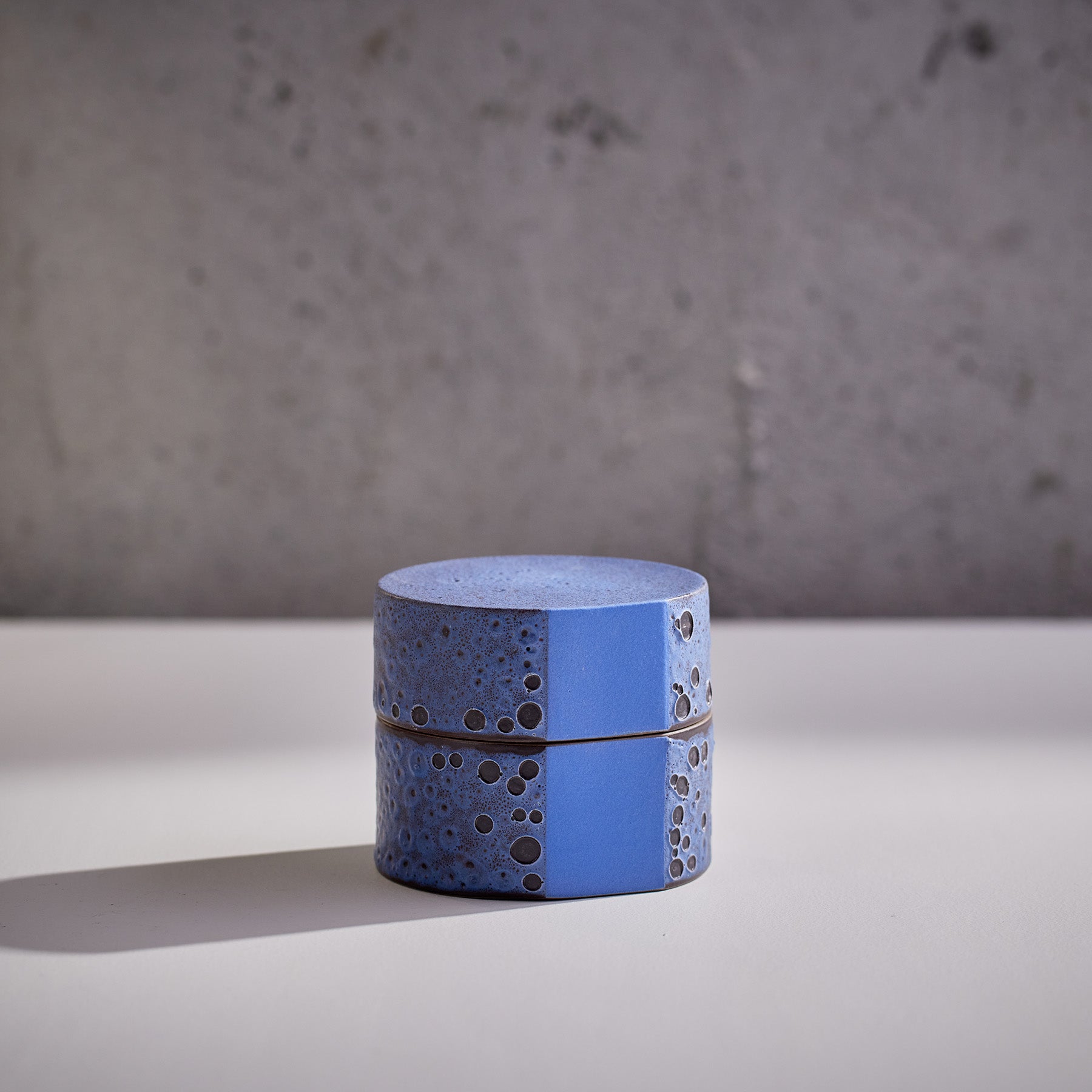This circular lidded box reveals a flat surface with the top and bottom are perfectly aligned. —Tung Chiang. Clay Studio Director