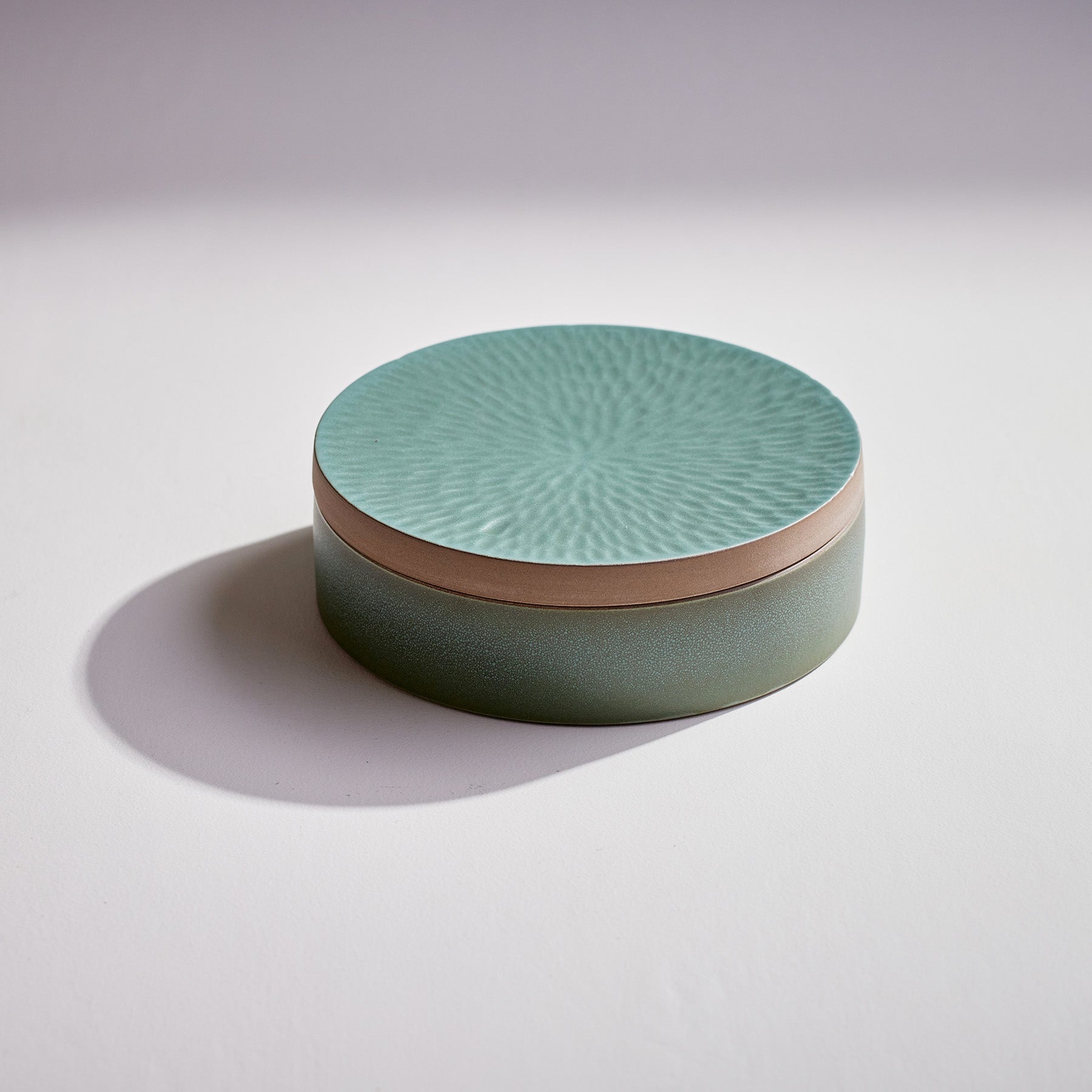 I don't usually do patterns. but the flat surface of this lid was just begging for something. —Tung Chiang. Clay Studio Director