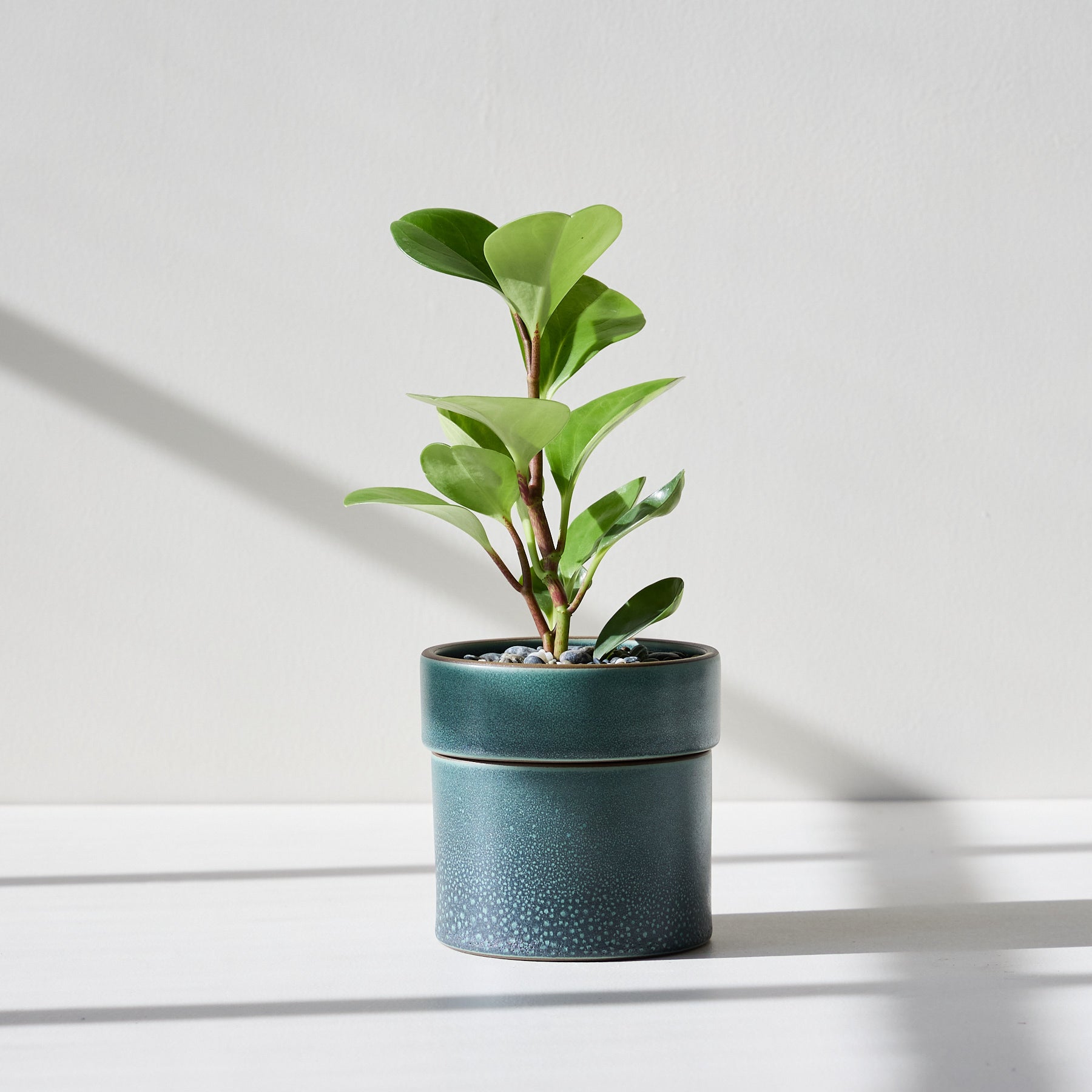 This form is an exploration of the classic terra cotta pot. When the two pieces are together. they form a simple cylinder. but the wide rim lifts to reveal a slightly tapered interior bowl. The cylinder is the saucer. so that the piece requires no additional tray around the base. A rich. green glaze departs from the typical orange of garden pots. and accentuates the green of the leaves. — Tung Chiang