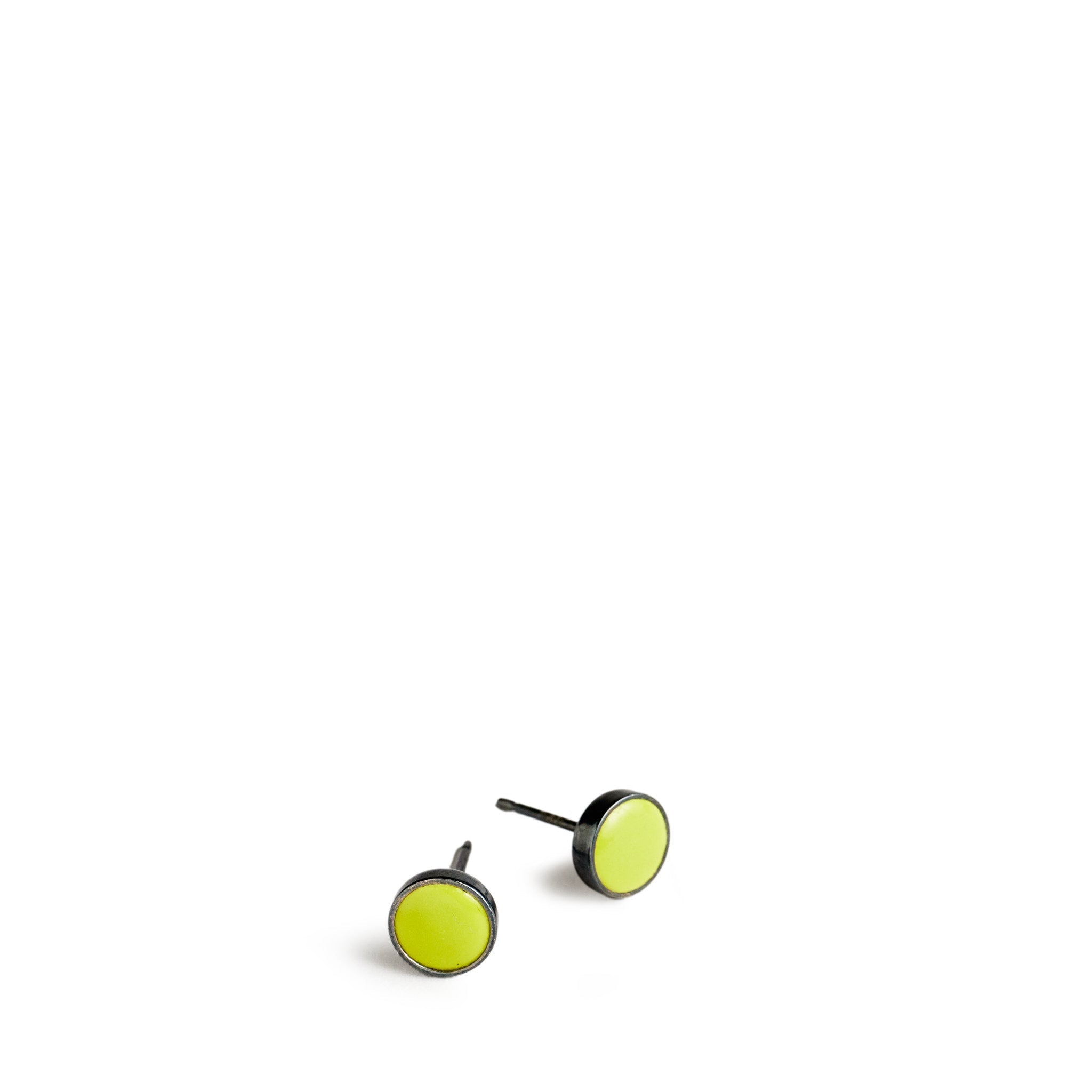 Artist and jeweler Julia Turner makes graphic and sculptural pieces that are strong and subtle. exquisitely crafted. and a joy to wear. These post earrings feature an enamel dot in a color inspired by glazes from the Summer Seasonal collection set in silver. A charming part of the Summer Seasonal collection.