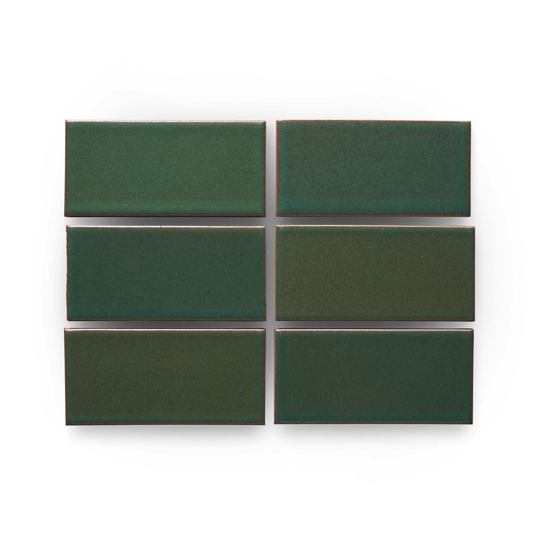 This glossy green glaze is a durable addition to the family of greens. capable of being used in many applications. The spectrum of variation on this glaze range from blue-green on one end to an earthy green on the other as the brown clay body appears through the glaze. Sold individually. Up to 6 tile samples may be ordered online. Glaze sample out of stock? Don't worry—all of our tile is made to order for every project.