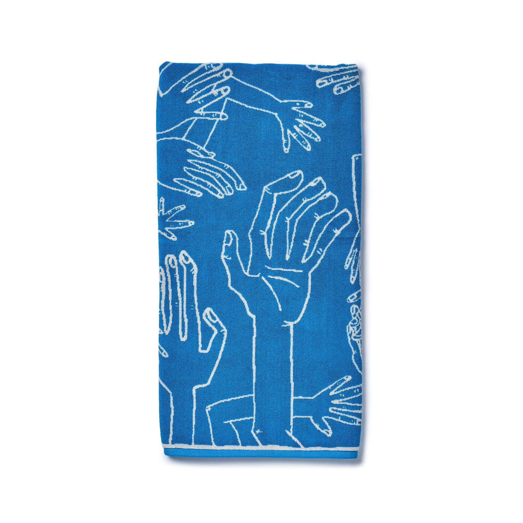 This all-cotton towel features a cheeky illustration by artist Jessica Thornton Murphy. Hop out of the tub and give yourself a handshake. a high-five. or a hug. These towels are handy for the bathroom or the beach.