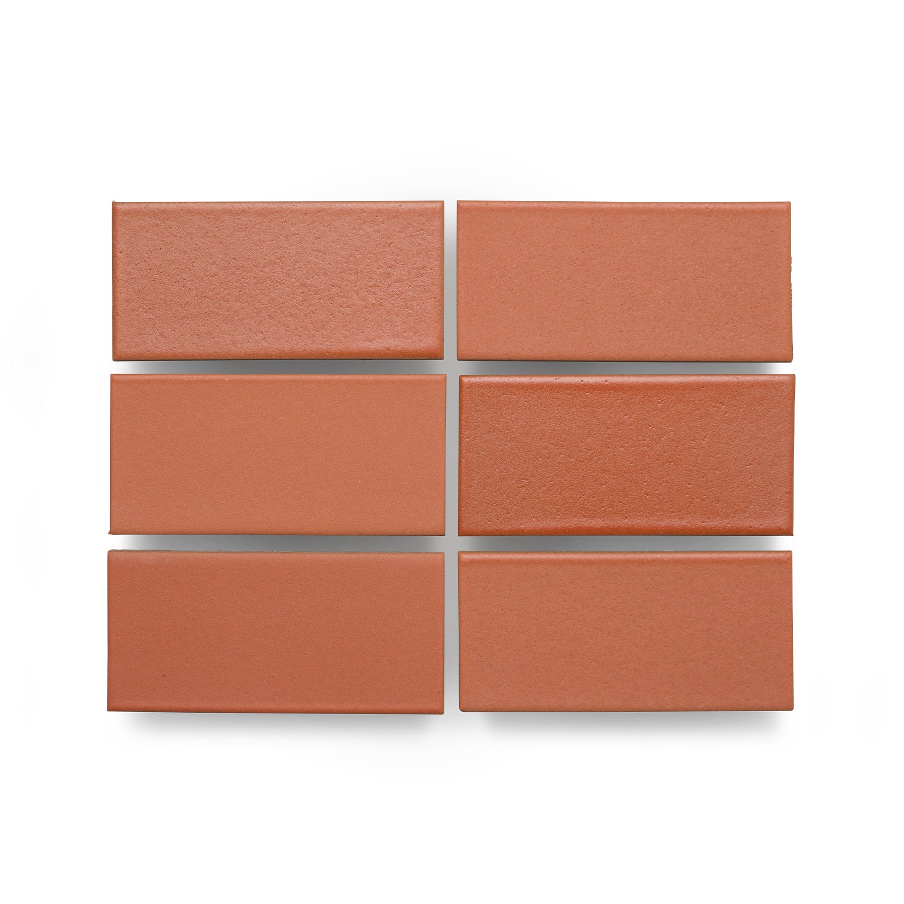 This earthy. deep orange glaze was developed as part of our Summer Seasonal collection in 2022. The tone has a warm richness without being a true red. Some tiles will show texture within the range of variation. Sold individually. Up to 6 tile samples may be ordered online. Glaze sample out of stock? Don't worry—all of our tile is made to order for every project.