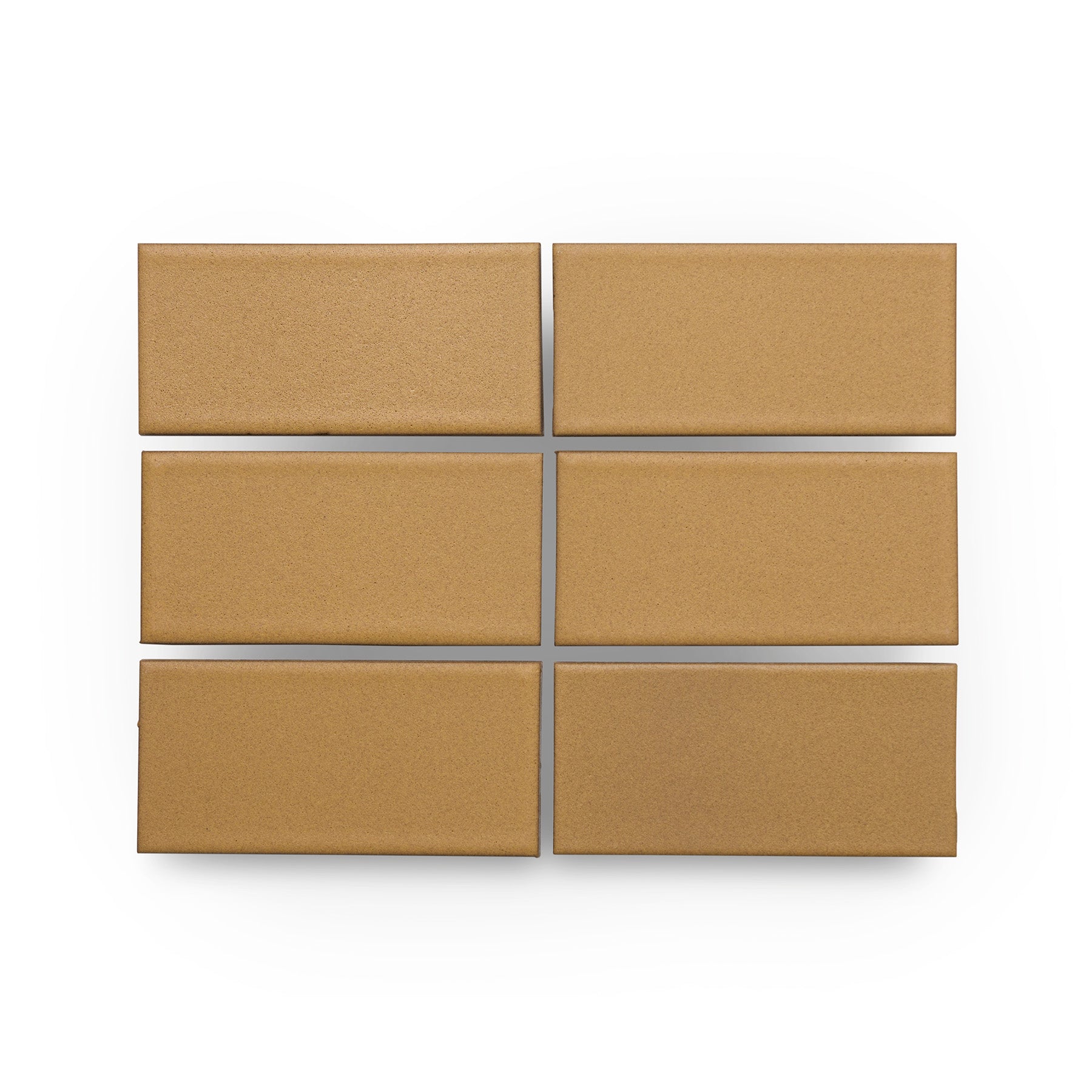 This glaze has a versatility and adaptability that comes from earth oxides in the formulation. which produce a brown undertone and yield variability in the firing from brown to yellow-orange. The result is a warm neutral with visible texture from the manganese clay body. Sold individually. Up to 6 tile samples may be ordered online. Glaze sample out of stock? Don't worry—all of our tile is made to order for every project.