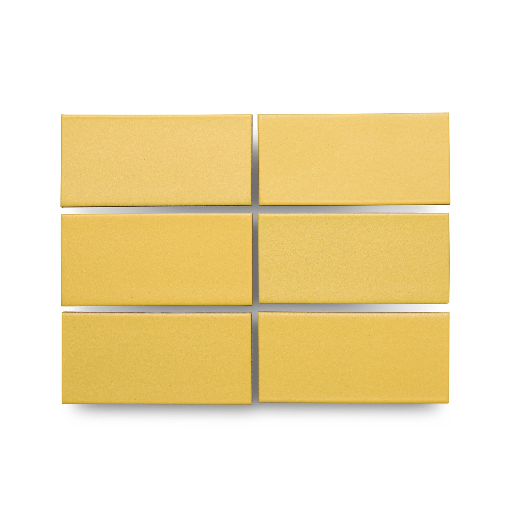 This warm yellow glaze has the lightest hint of green from the brown clay body underneath. a slightly more satin sheen than our other textured mattes. Sold individually. Up to 6 tile samples may be ordered online. Glaze sample out of stock? Don't worry—all of our tile is made to order for every project.