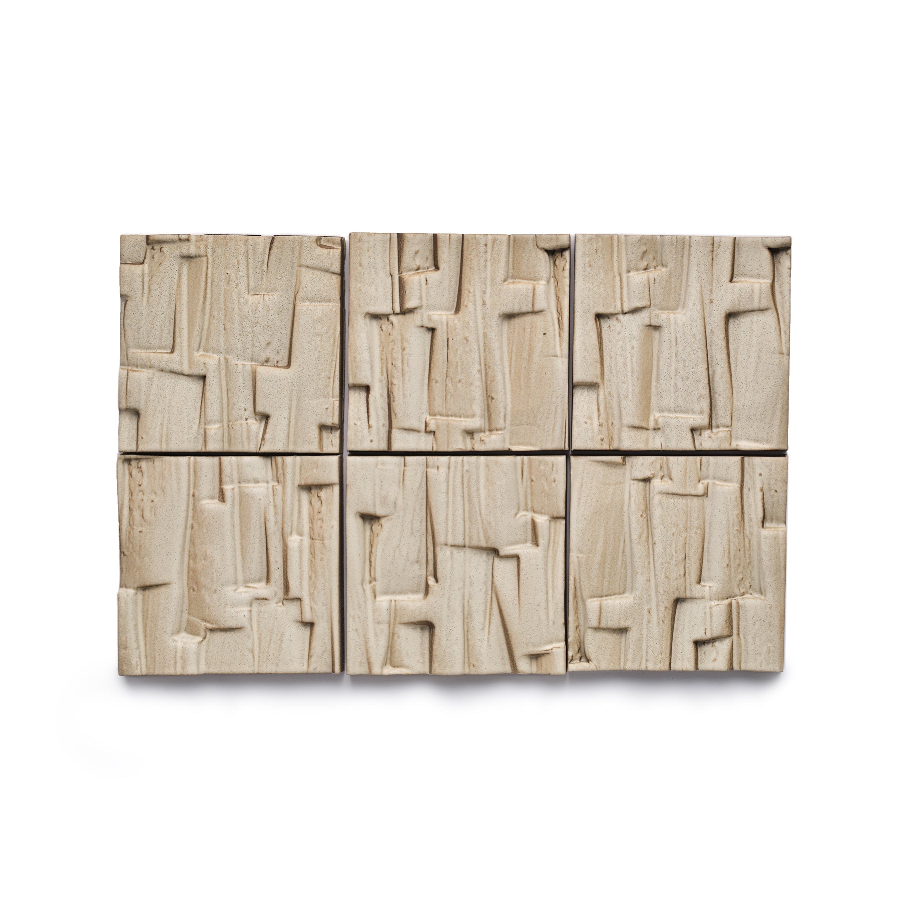 With a stone-like surface texture. Oat has a creamy undertone and subtly reveals the presence of the brown clay body. as well as fine speckling from additional manganese in the glaze itself. This glaze is shown here on our Stan Bitters tile sample shape. Sold Individually. Online orders are limited to seven different Stan Bitters tile glaze samples per order—one of each glaze available in the Stan Bitters tile collection. Glaze sample out of stock? Don't worry—all of our tile is made to order for every project.