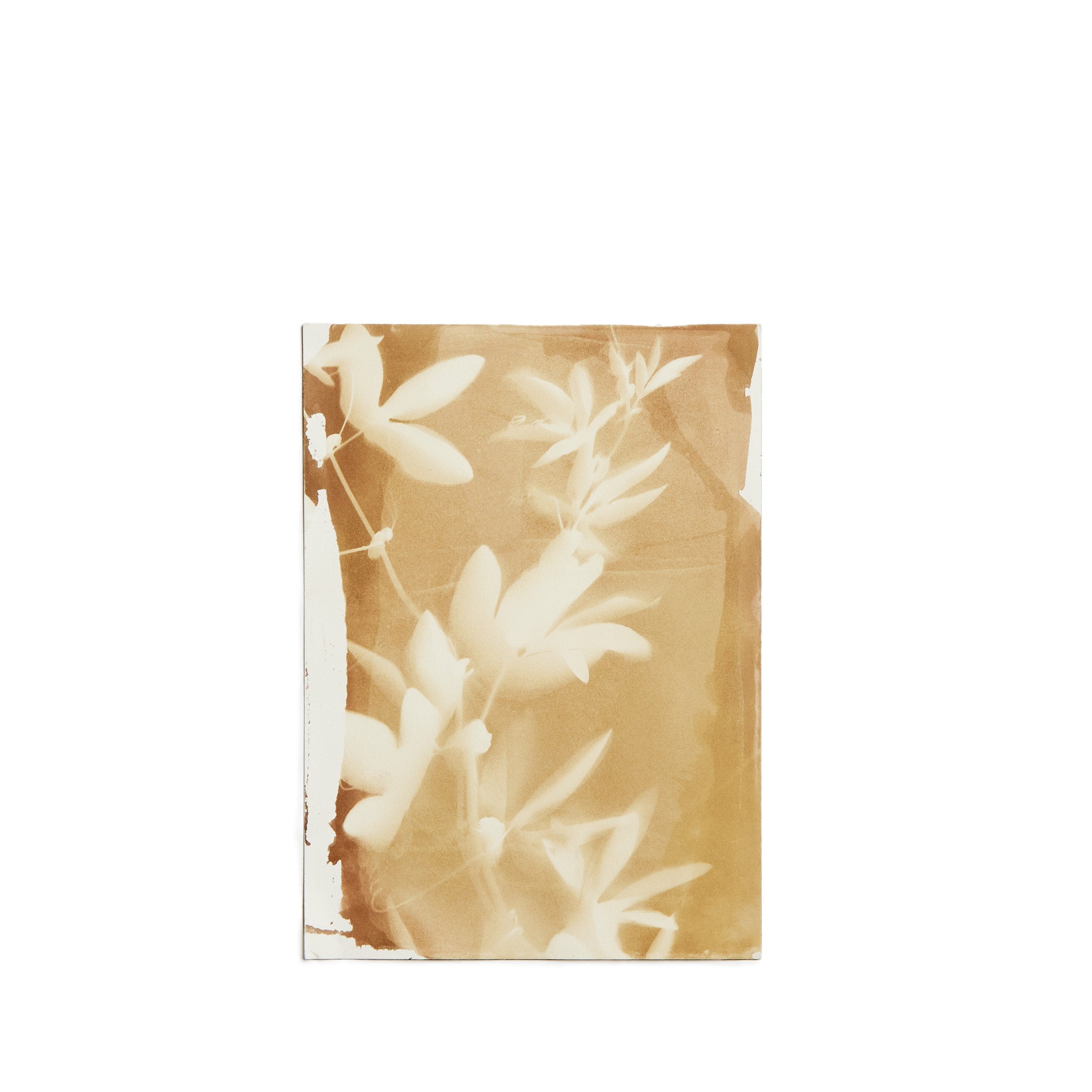 Rinne Allen's light drawings capture the flora of her garden as it changes throughout the year. To create her drawings a light sensitive emulsion is painted onto paper in the dark. Then she places different objects on the paper and places them in the sun. The interaction of sunlight. object. and emulsion captures the object's silhouette on the page. These one-of-a-kind pieces are a natural complement to the Summer Seasonal collection.