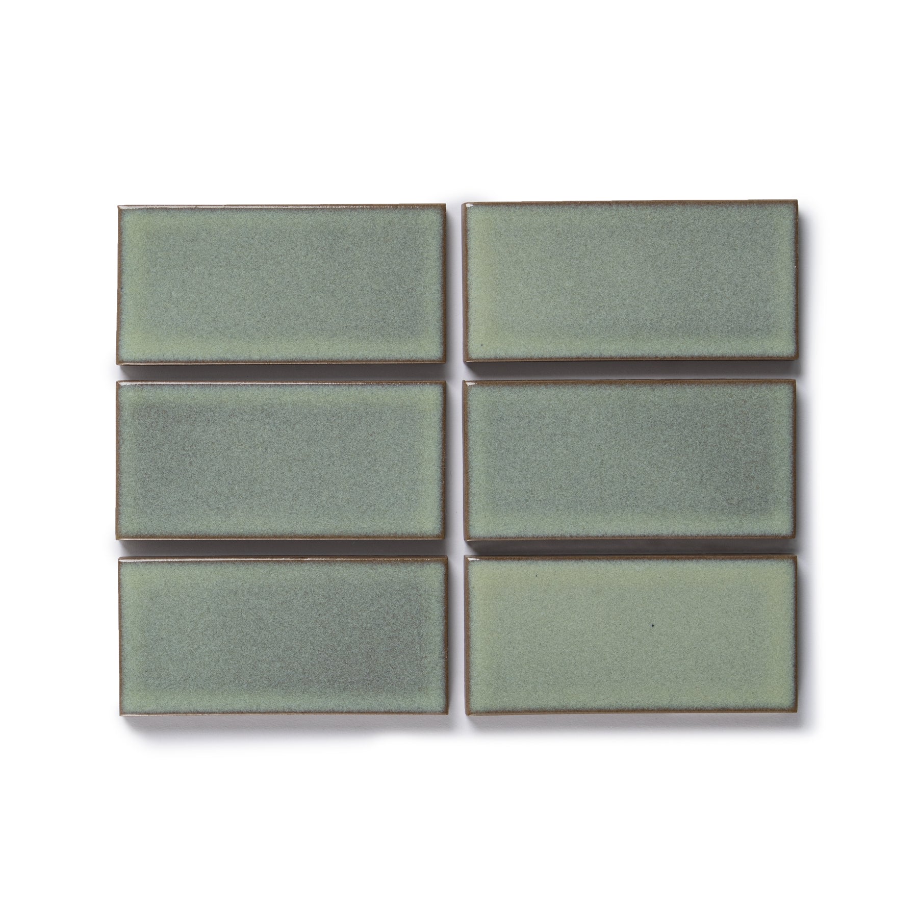 A warm. earthy green with soft brown undertones. The surface finish is glossy with just a little bit of texture. This glaze will range in variation from very opaque to translucent. showcasing the earthy brown of the clay underneath. Sold Individually. Up to 6 tile samples may be ordered online. Glaze sample out of stock? Don't worry—all of our tile is made to order for every project.