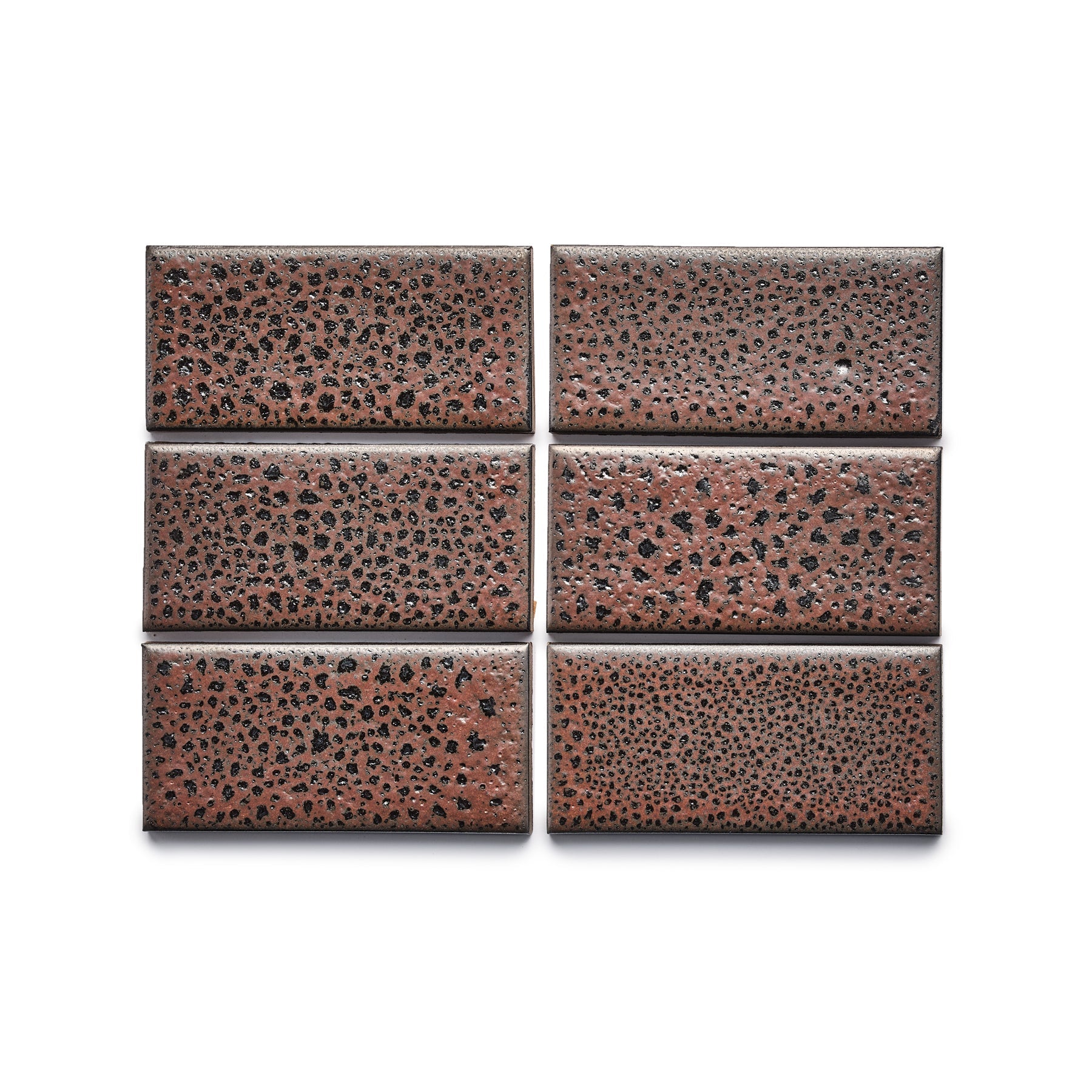 This highly dynamic glaze was developed to mimic a classic glaze Edith Heath developed for an installation on the facade of the Norton Simon museum in Pasadena. CA. Depending on the interaction between the layered glazes in the kiln. some tiles will exhibit more Redwood tones and others more Hematite tones giving installations a naturalistic range of tones from red-brown to dark. metallic grey. The surface has a subtle sheen and is highly textured and mottled. Sold Individually. Up to 6 tile samples may be ordered online. Glaze sample out of stock? Don't worry—all of our tile is made to order for every project.